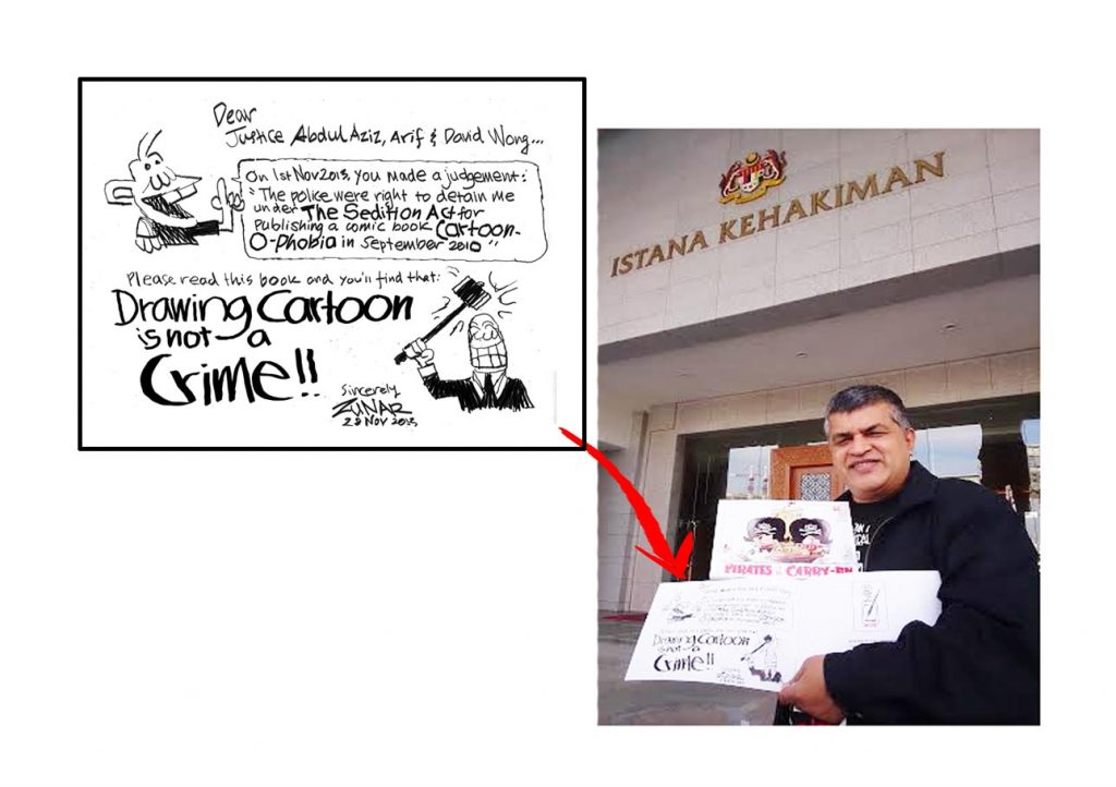 Zunar has faced a travel ban since June 2016, which he discovered in October 2016 when he tried to leave Malaysia to attend an event in Singapore. Zunar has also today been prevented from attending a freedom of expression panel hosted by ARTICLE 19 in London due to the ban. The decision to maintain the ban was based on the decision of the Federal Court in an appeal by MP Tony Pua against a similar ban, and states that the Immigration Department Director General has extremely broad powers to restrict Malaysians’ travel without giving a reason – a worrying state of affairs given ongoing judicial harassment of media and human rights defenders across the country.