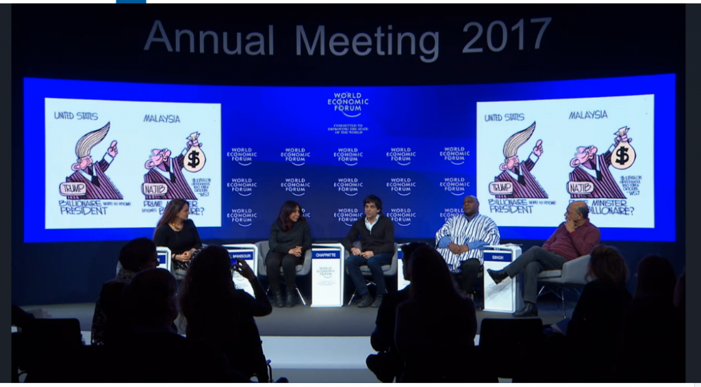 Zunar’s cartoon featuring ‘billionaire’ Prime Minister Najib Abdul Razak was featured in a session at the World Economic Forum in Davos, Switzerland. The cartoon, which contrasted billionaire Donald Trump becoming US president and Najib becoming a billionaire while being prime minister, was highlighted by Globe…