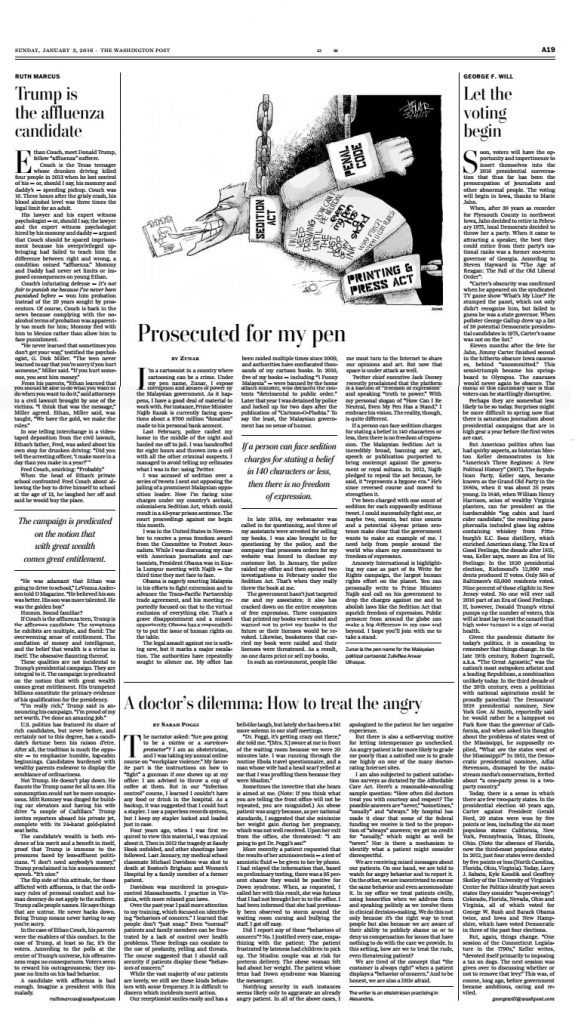 WASHINGTON POST PUBLISHES ZUNAR OPINION PIECE ON FREEDOM OF EXPRESSION By Sukhbir Cheema Zunar started off 2016 with a bang by having his opinion piece published in a major American newspaper on New Year’s day. The Washington Post, founded in 1877, is one of the country’s…